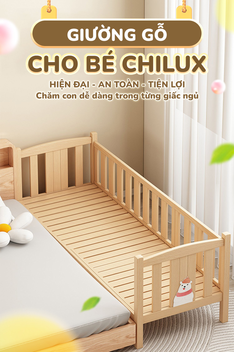 Giường gỗ cho bé Chilux – Hiện đại, an toàn, ghép giường tiện lợi và dễ dàng điều chỉnh độ dài giường