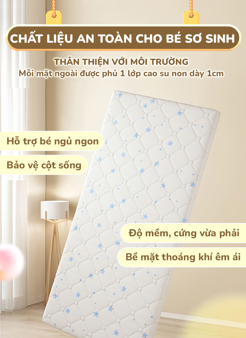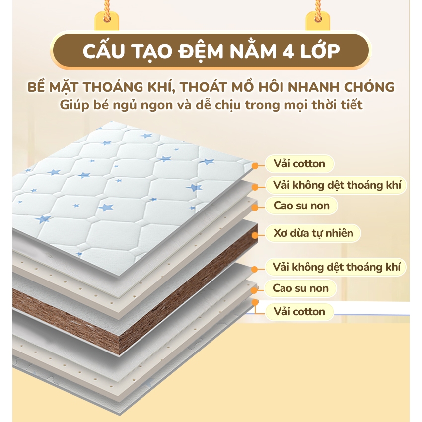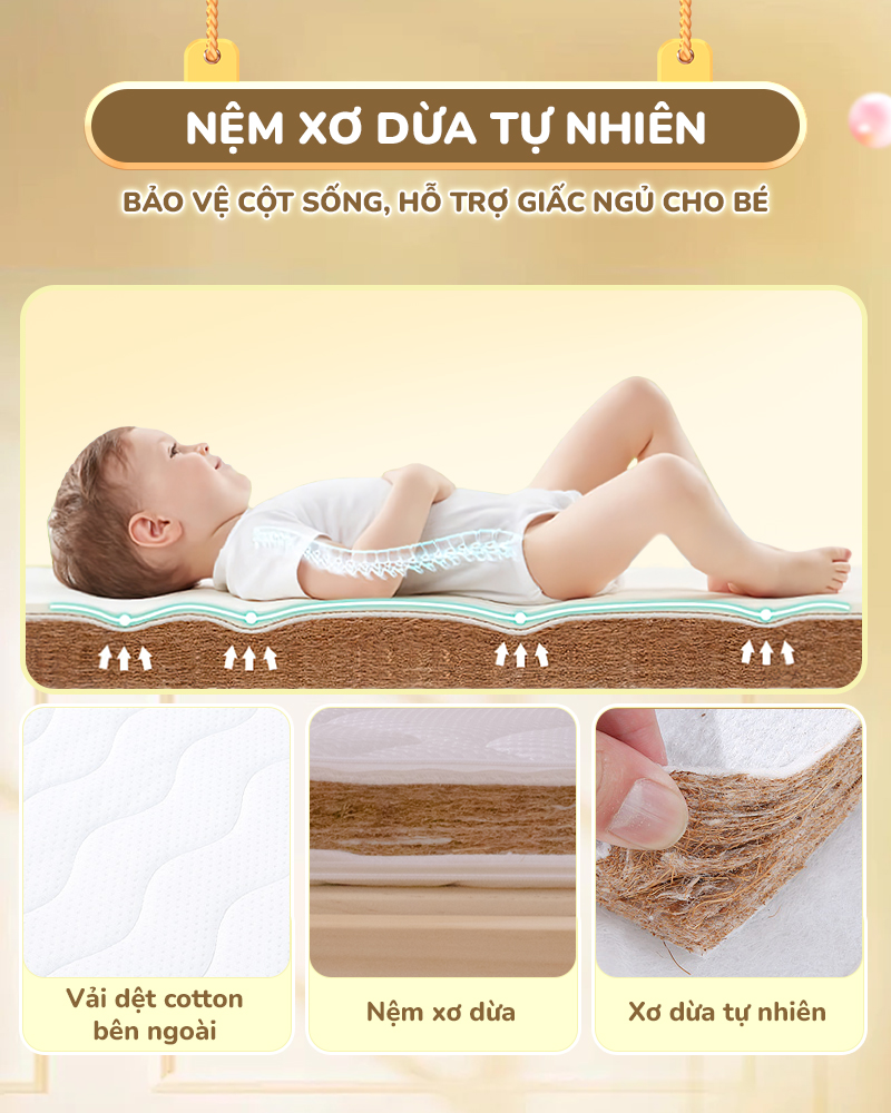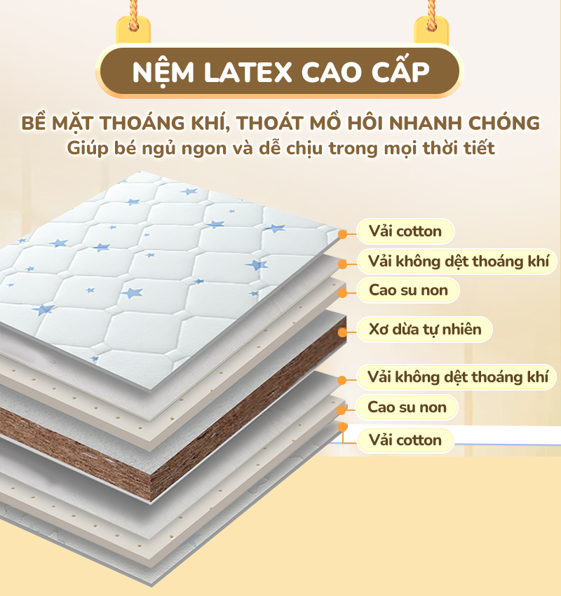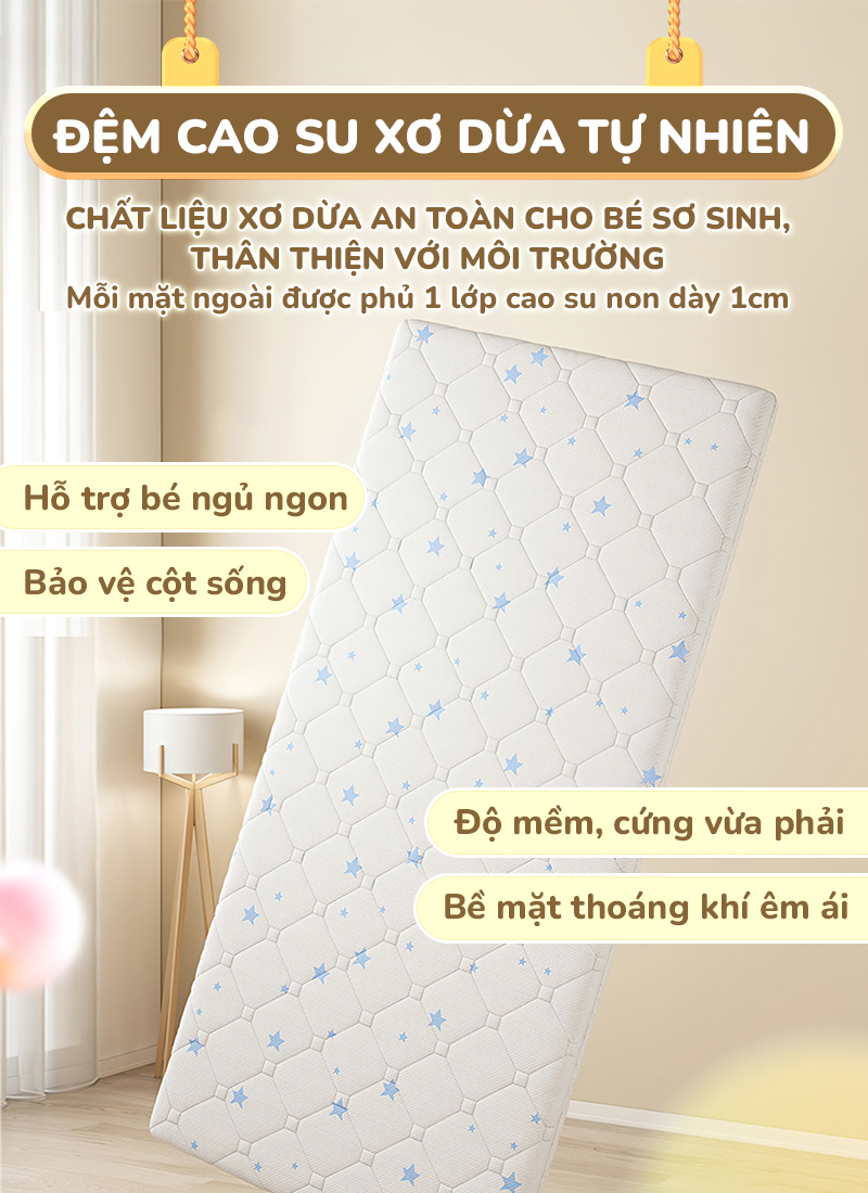 Chất liệu đệm: Xơ dừa tự nhiên, Latex cao cấp