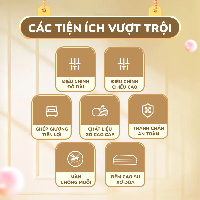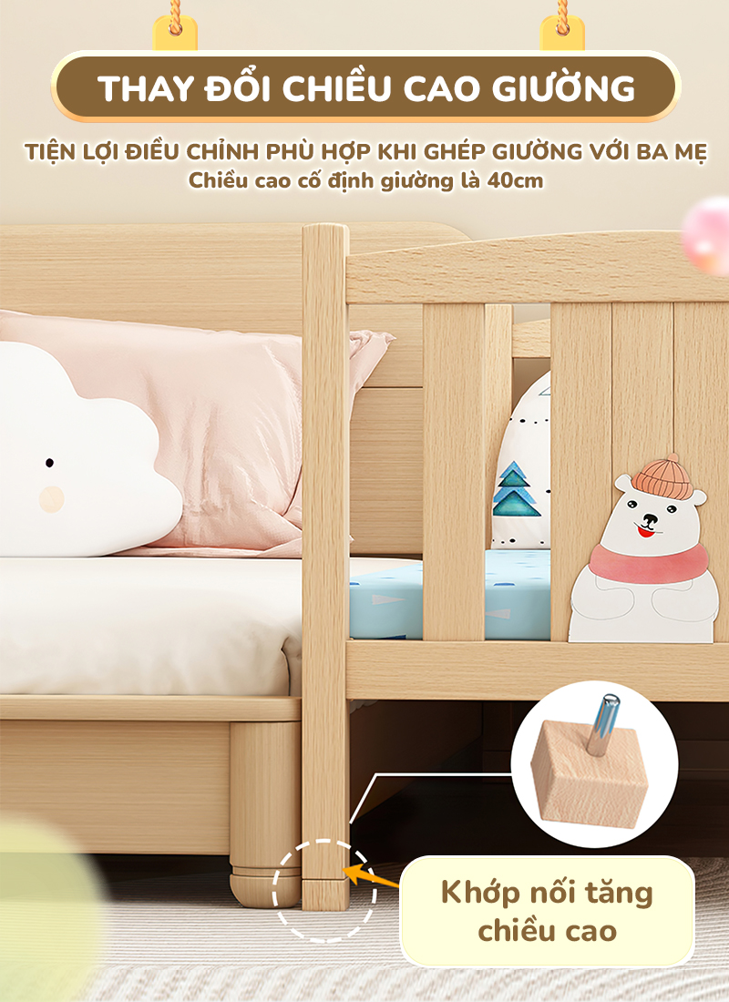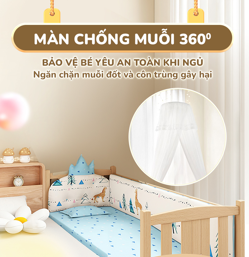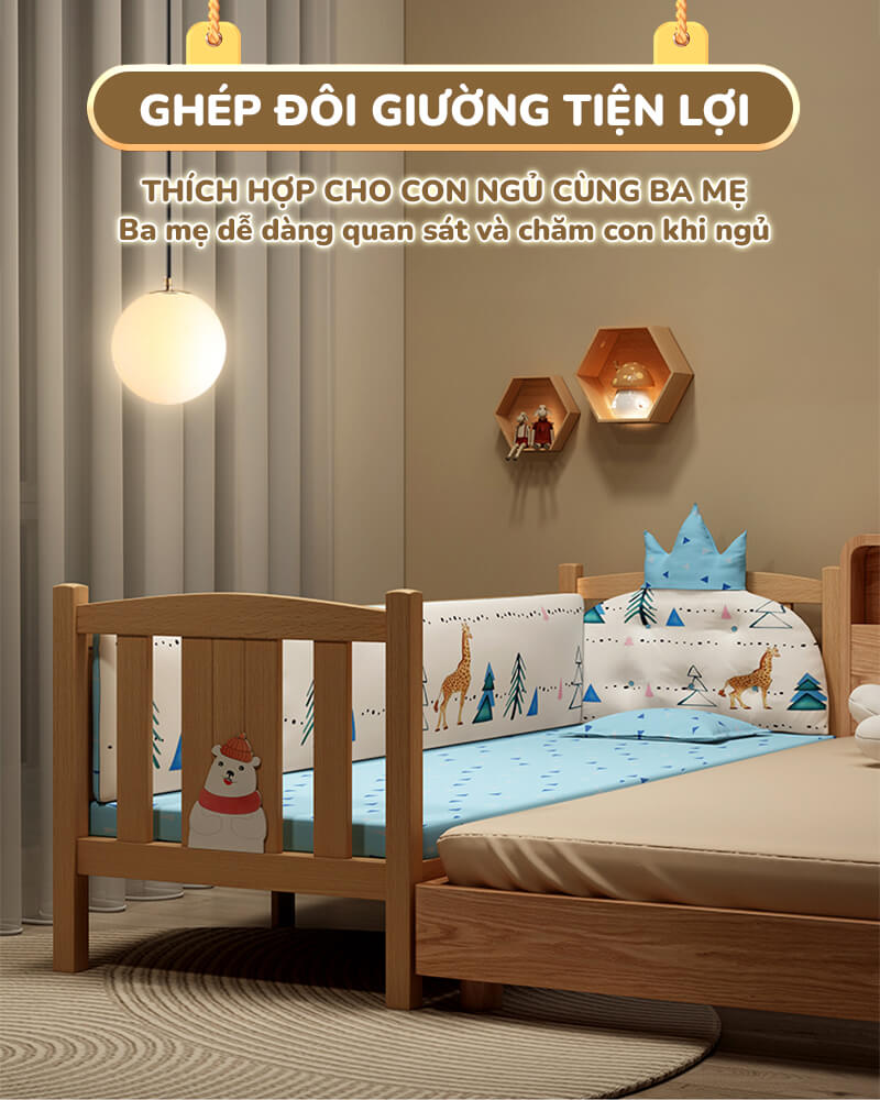 ✔️Dễ dàng ghép đôi với giường bố mẹ để tiện chăm sóc bé nhất là vào ban đêm