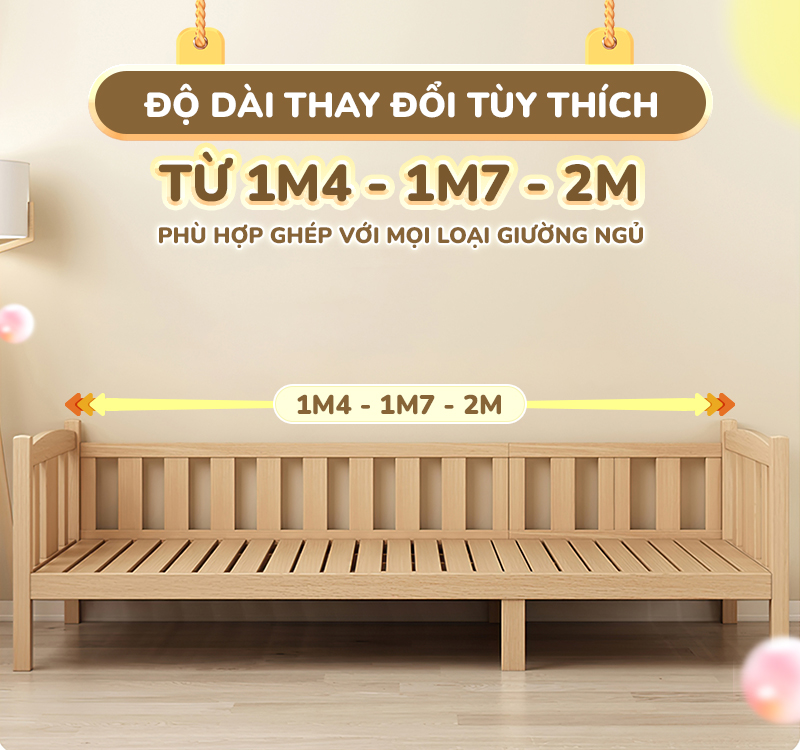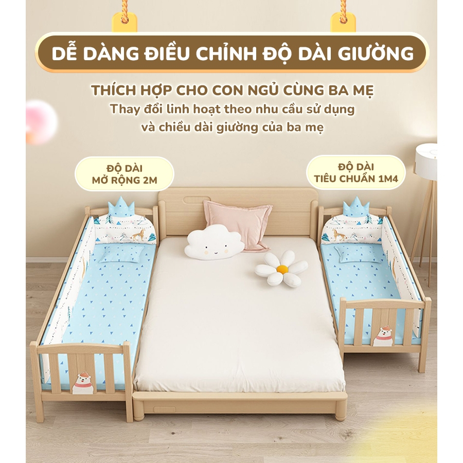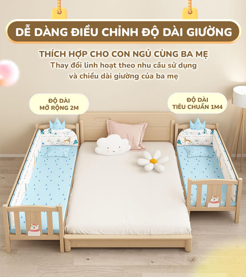 ✔️Linh hoạt thay đổi chiều dài giường từ 1m4 đến 2m theo nhu cầu sử dụng và các giai đoạn phát triển của bé.