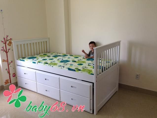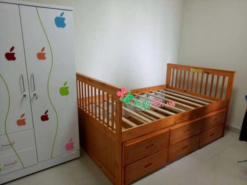Lưu ý : Khi sử dụng giường tầng cho bé bạn nên sử dụng ” Đệm dày 9cm trở lên” , tầng trên không quá 70kg, tầng dưới không quá 80kg. Hoặc bạn có thể gia cố thêm nan giường để đảm bảo chiếc giường của bạn được chắc chắn hơn.