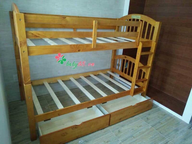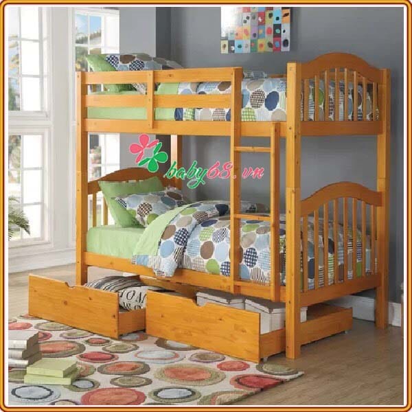 Sản phẩm giường tầng cho trẻ em BB 225 được làm từ gỗ thông đã được xử lý chống mối mọt, cong vênh. Thiết kế lan can chắn an toàn khi bé nằm ngủ. Cầu thang đơn rộng rãi và vững chãi giúp bé lên xuống dễ dàng.