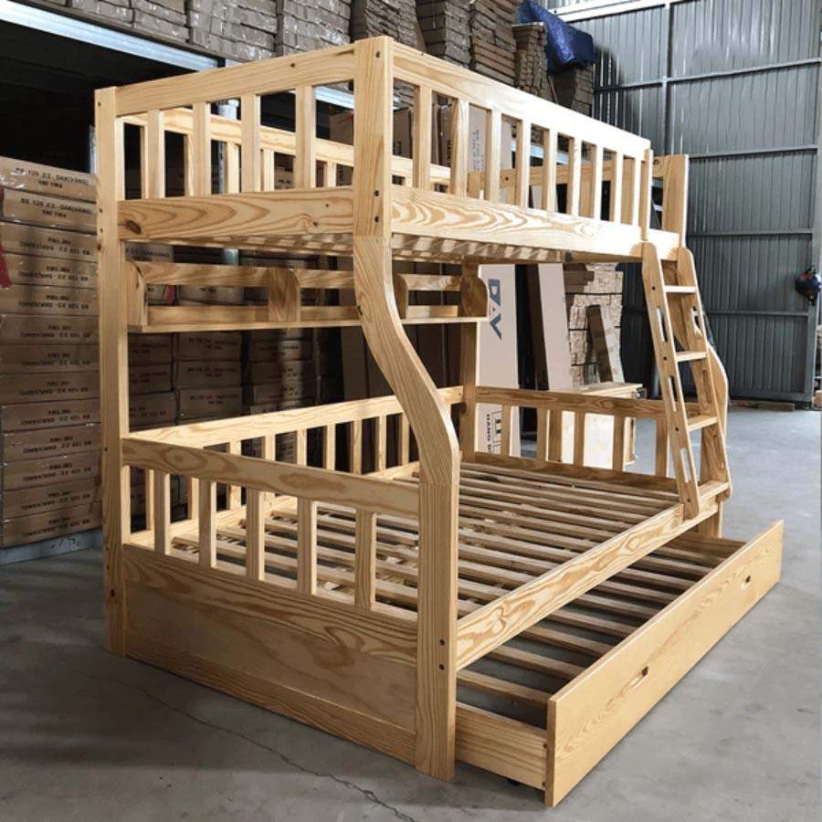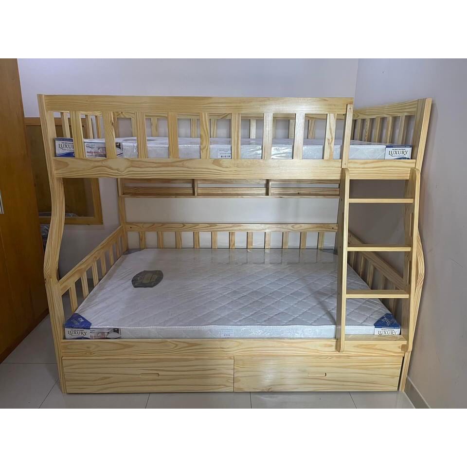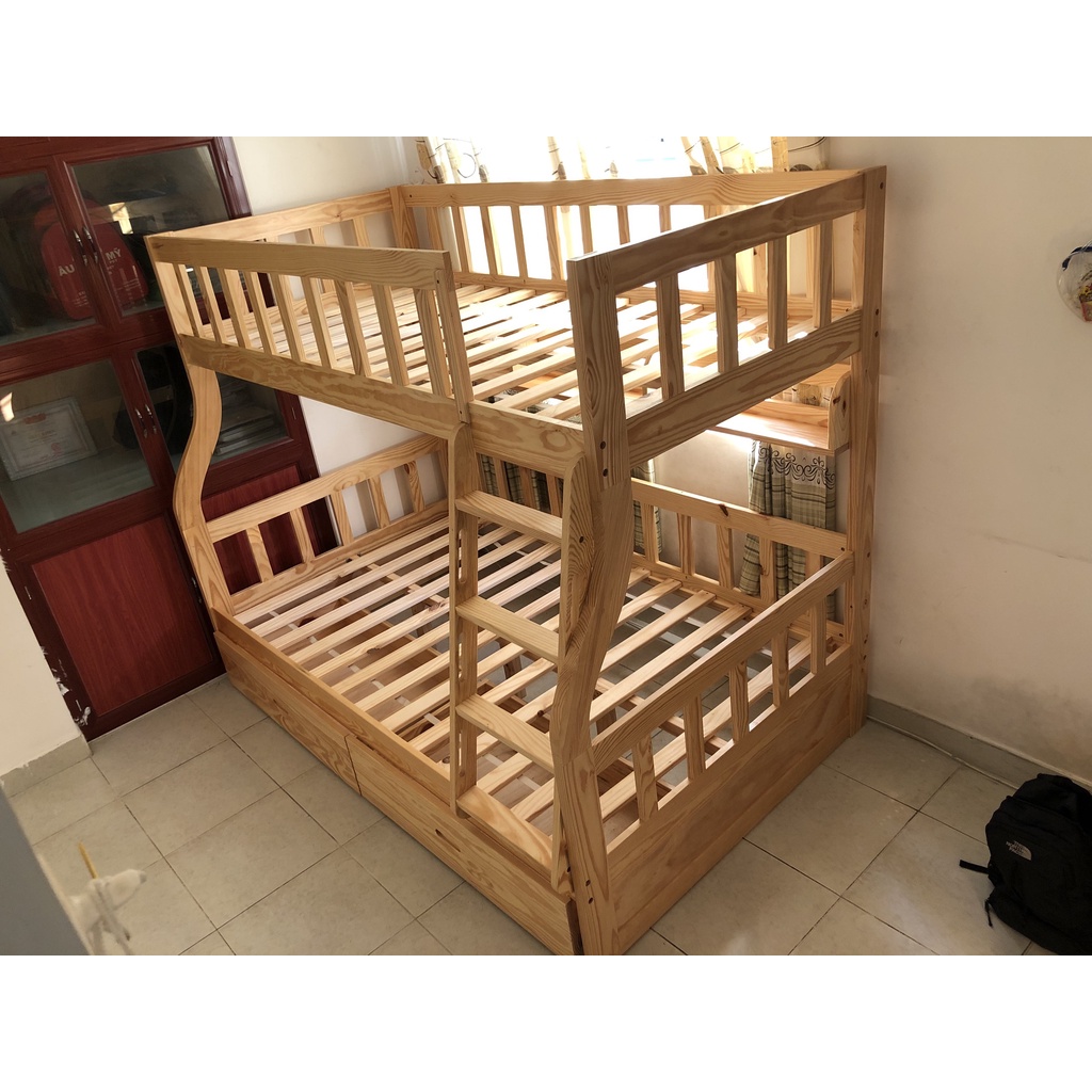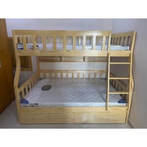 – Dùng được cho cả trẻ em và người lớn với 2 giường nằm, trong đó tầng dưới cùng có thể thiết kế làm giường hoặc ngăn tủ để đồ, có thể để được nhiều quần áo, chăn đệm rất tiện lợi.