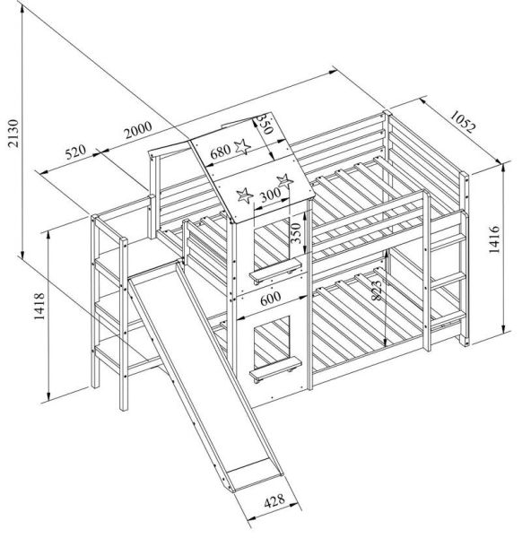 - Kích Thước Toàn Phần ( 252 x 141.8 x Giường 141.6 / Mái Nhà 213 ) cm