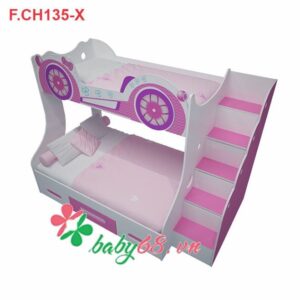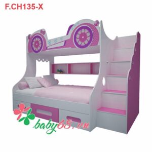 - – Giường ngủ bé gái hai tầng công chúa được thiết kế phù hợp với những căn phòng chật hẹp hay muốn tiết kiệm không gian.- Bề mặt giường được sơn màu công nghệ 2k theo tiêu chuẩn Đông Nam Á, không bám bẩn, dễ lau chùi và hạn chế trầy xước. Sơn được dùng là loại sơn an toàn cho sức khoẻ và thân thiện môi trường có kiểm định của cơ quan chức năng- Giường được làm bằng gỗ MDF dòng E1 nhập khẩu từ Malaysia tiêu chuẩn Đông Nam Á, đã qua xử lý chống, cong vênh mối mọt bằng công nghệ của Đức, chất lượng không thua kém gỗ tự nhiên 100%.. phụ kiện kem theo được đặt tại châu âu như: như bản lề, ray trượt v.v..- Hộc chứa đồ dùng quần áo được tích hợp bên dưới giường (1 chiếc ) và bậc thang (2 chiếc) nên rất gọn gàng tiện dụng, giúp các bé rèn luyện tính ngăn nắp. Quý khách có thể lựa chọn mua thêm hộc đồ cho bé.