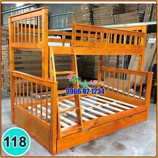 Giường tầng gỗ thông BF118 ( 1M-1M2 ) Nhiều màu kèm hộc kéo