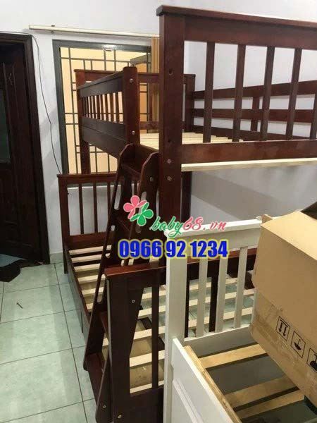 THƯƠNG HIỆU: UNIHOME KÍCH THƯỚC: – Phủ bì: R 126 x D 204 x C 178 (cm) – Tầng trên 1m x 1m92– Tầng dưới 1m2 x 1m92– Khoảng cách giữa hai tầng 98cm.– Chiều cao lan can chắn tầng trên 35cm.– Rộng bậc thang 30cm.*Gầm là hộc kéo 1m x 185cm.*Thang gỗ ép chịu lực 10 cây/tầng.NỆM TẦNG TRÊN: R 100 x D 191 (cm) ( Đặt nệm dày >=10cm ) NỆM TẦNG DƯỚI: R 120 x D 191 (cm) ( Đặt nệm dày >=10cm ) MÀU SẮC: TRẮNG(WHITE) – VÀNG(OAK) – NÂU(ESP) CHẤT LIỆU: Gỗ thông New Zealand SẢN XUẤT TẠI: Việt Nam BẢO HÀNH: 2 Năm