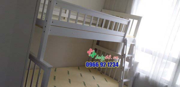 - Trên giường tầng có lắp thanh ngang an toàn ở bốn phía, đảm bảo bé và gia đình yên tâm ngủ ngon