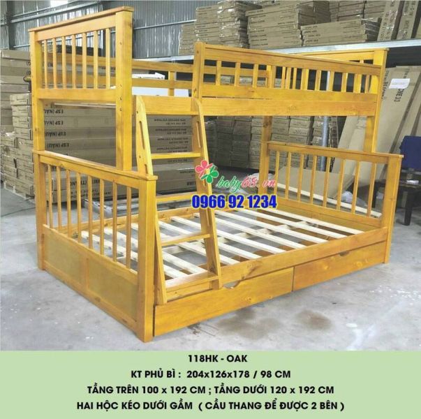 Giường tầng BF118 là hàng Việt Nam xuất khẩu cao cấp, được thiết kế dựa trên phong cách Châu Âu hiện đại, tối đa hóa không gian cho gia đình. Chiếc giường có kết cấu 2 tầng chắc chắn, làm từ chất liệu gỗ tự nhiên cao cấp, bậc thềm đi lên thiết kế dạng khối hộp kết hợp ngăn đựng đồ tiện ích cho gia đình. Sản phẩm dùng được cho cả trẻ em và người lớn.