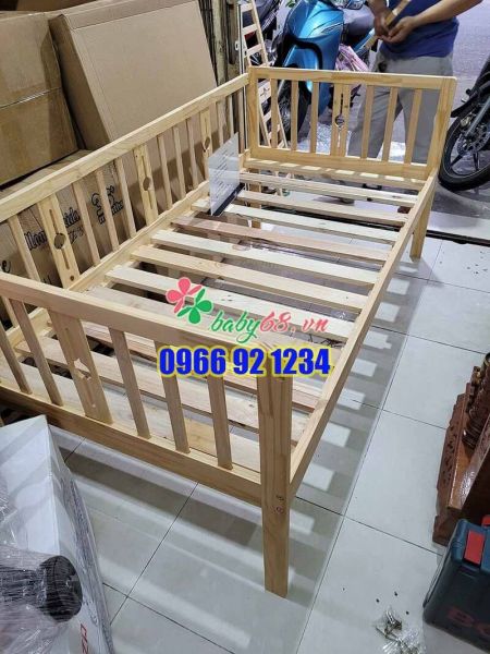 – Chất gỗ thông nguyên chất tạo cho giường sự chắc chắn, mát mẻ. màu sắc tươi tắn, thiết kế nhỏ gọn phù hợp với mọi không gian và có thể di chuyển đến nhưng nơi khác nhau thuận lợi việc trông coi và chăm sóc trẻ cách tốt nhất.