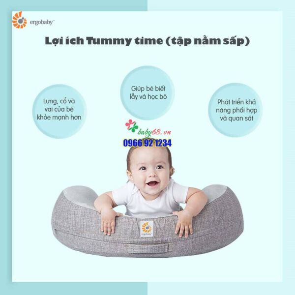 – Ngoài ra, gối cho bé bú Ergobaby Pillow còn là trợ thủ đắc lực cho bé trong giai đoạn tập lẫy và tập ngồi. Gối Ergobaby giúp bé tập khả năng tự vận động, kiểm soát đầu, cổ, có thể nằm sấp lâu mà không bị tức ngực, đau tay, tạo điểm tựa cho bé dễ lật hơn.