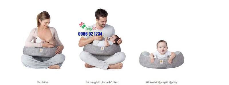 - Ngoài việc giúp các mẹ bế bé dễ dàng, nhẹ nhàng hơn, không mỏi vai, tay, lưng khi phải bế bé quá lâu trên tay, thì gối cho bé bú Ergobaby còn giúp các ông bố đỡ lóng ngóng khi bế con, cho con ti sữa ổn định tư thế cho bé bú thoải mái nhất.