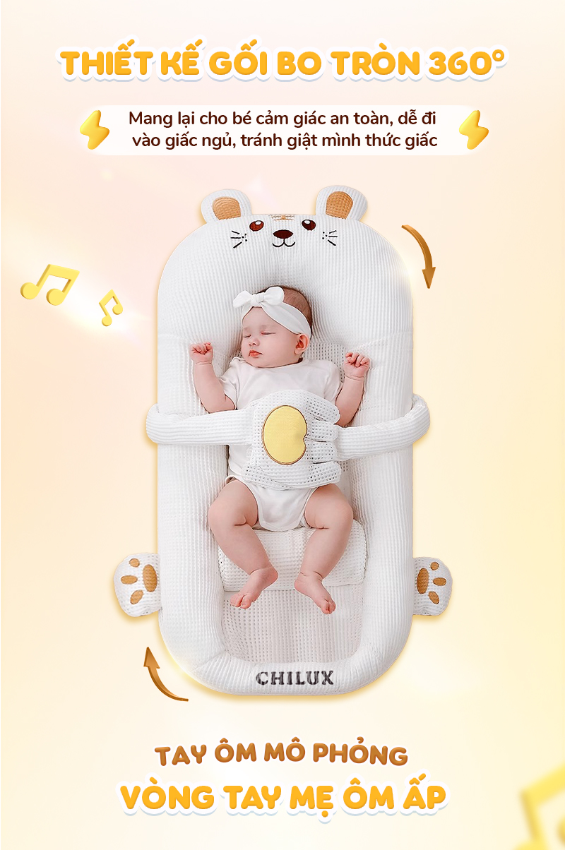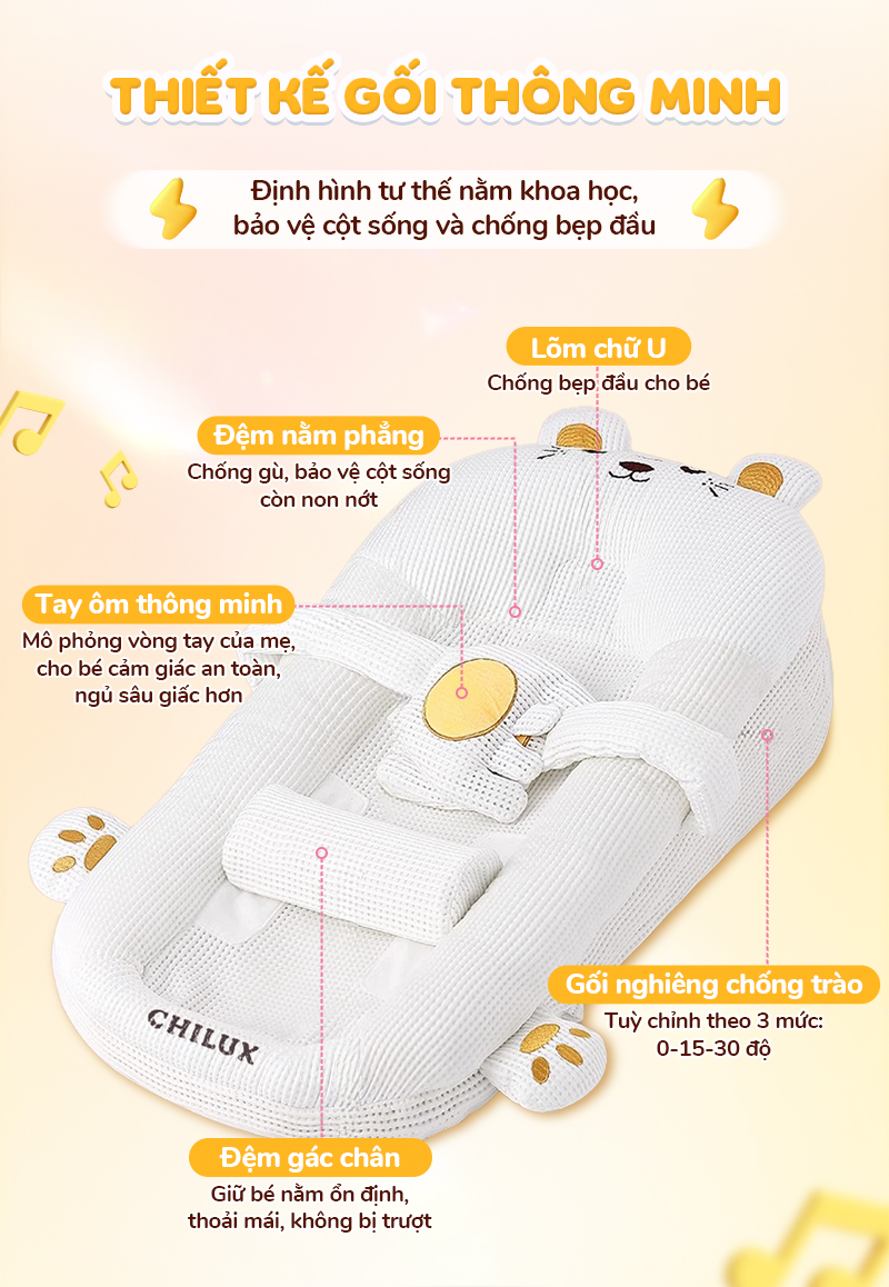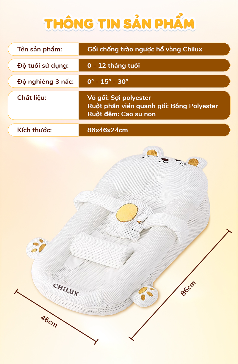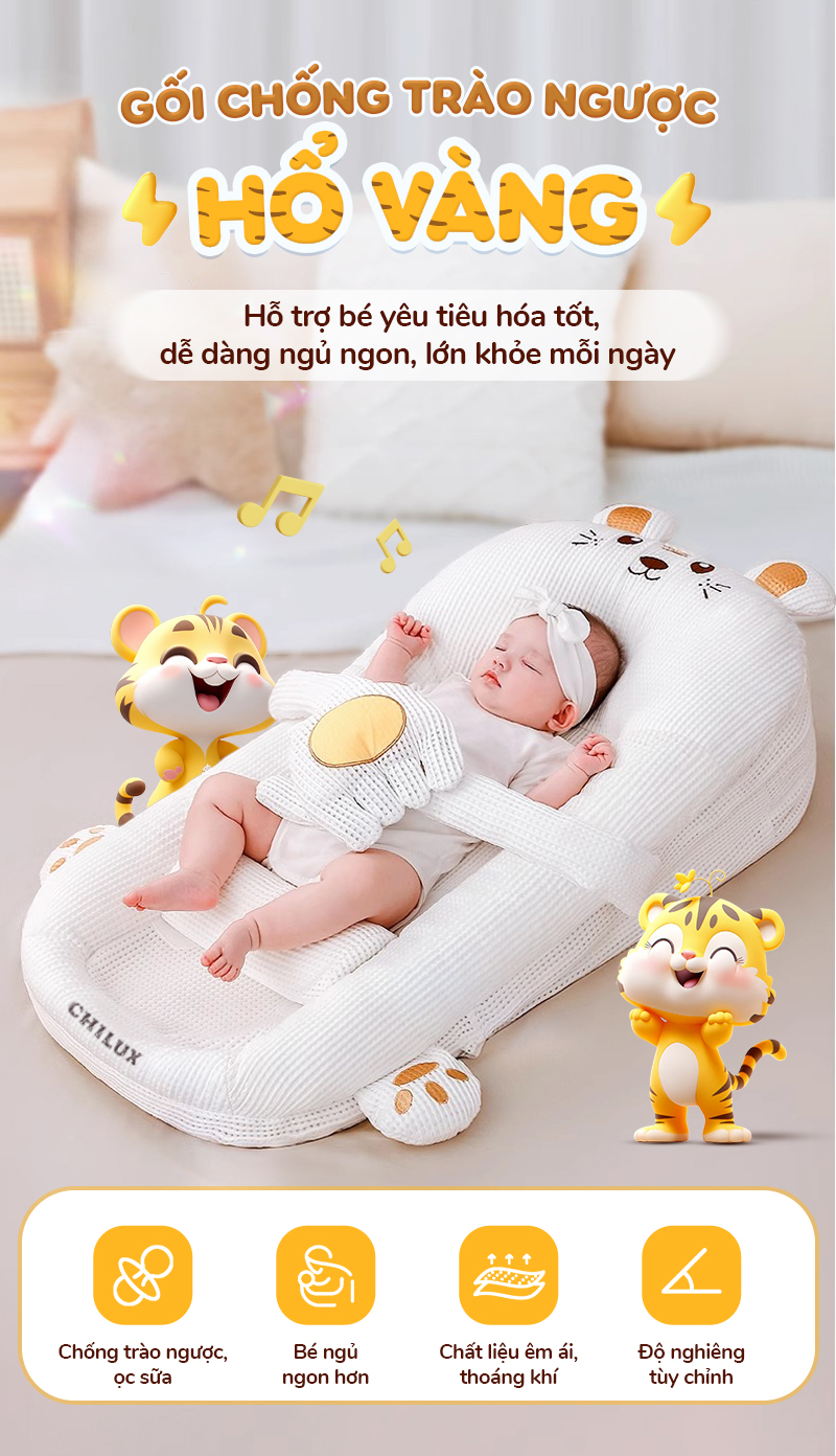 Gối chống trào ngược cho bé Hổ vàng Chilux – Thiết kế 3 nấc nghiêng tùy chỉnh, gối định hình
