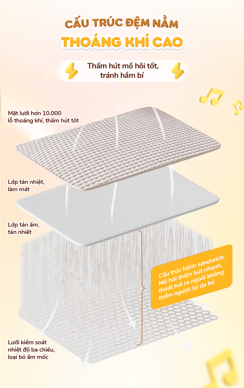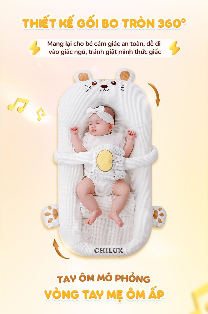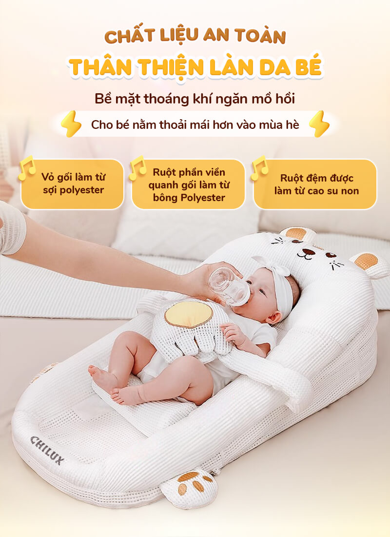 ✅ Đệm nằm bằng phẳng, bảo vệ cột sống của bé