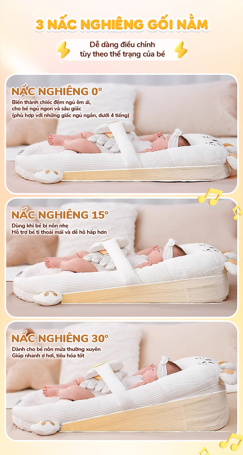 ✅ Có thể điều chỉnh độ nghiêng 3 góc: 0° – 15° – 30°, chống trào ngược dạ dày và thực quản