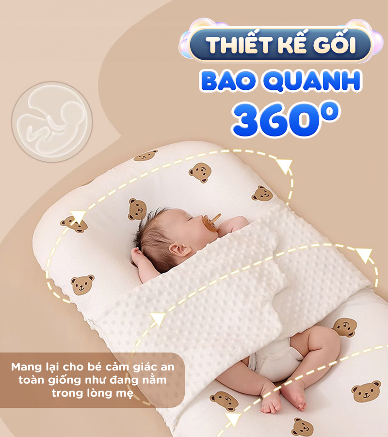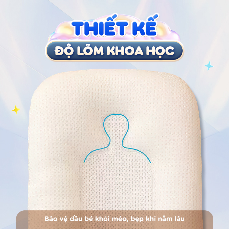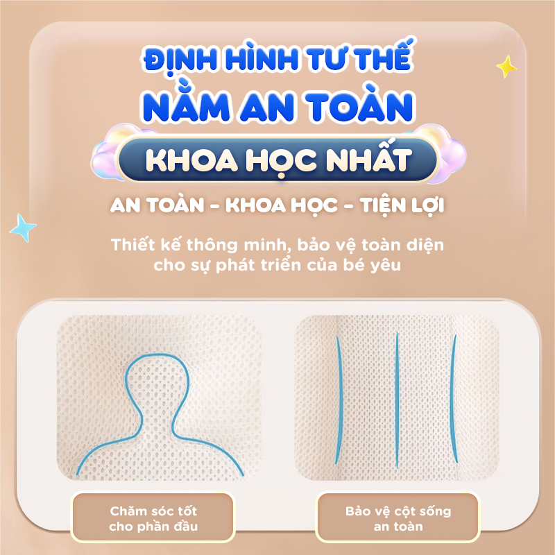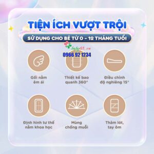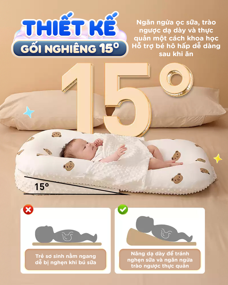 - Gối nghiêng 15°, chống trào ngược dạ dày, chống ọc sữa, hỗ trợ hô hấp tốt