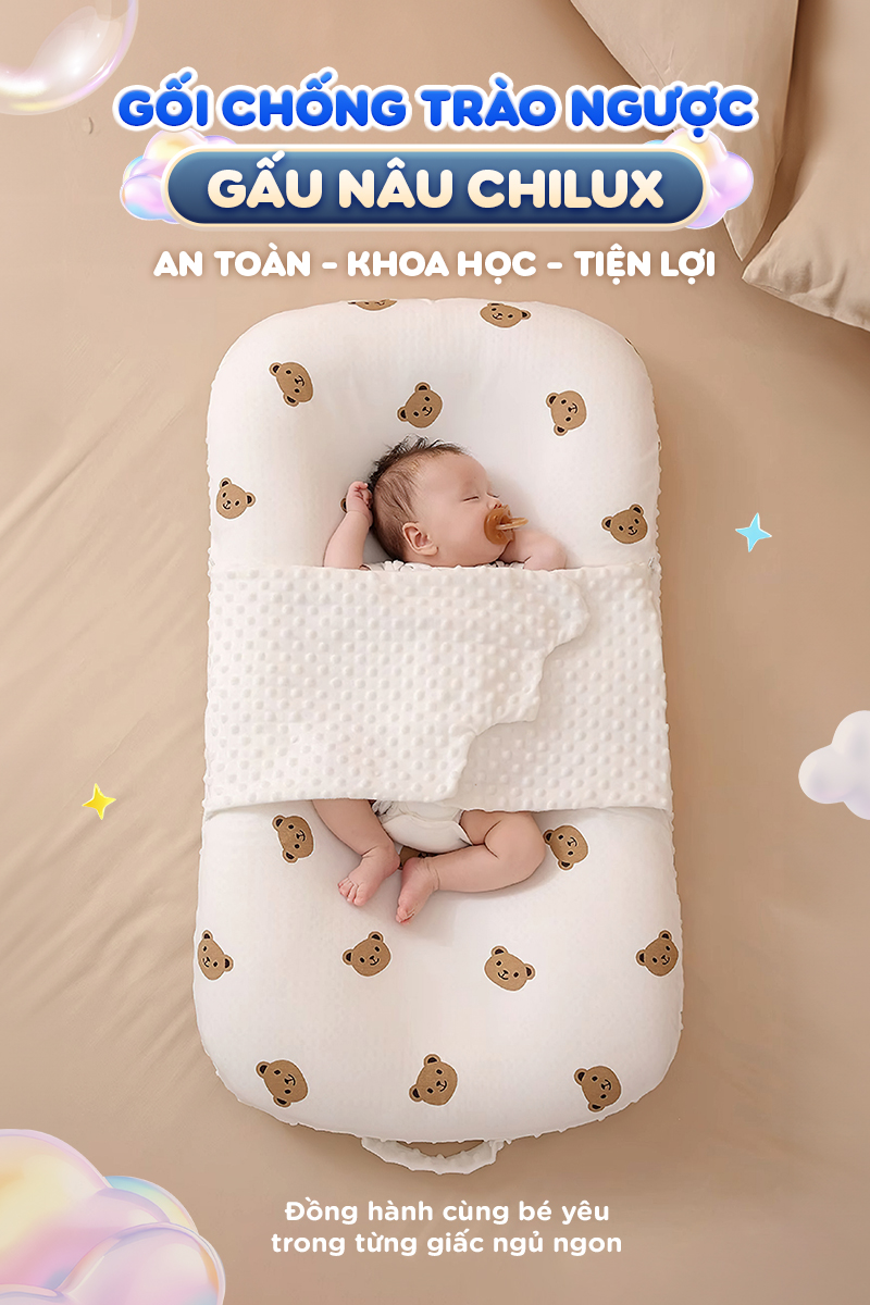 Gối chống trào ngược gấu nâu Chilux – Định hình tư thế nằm khoa học, ngăn ngừa ọc sữa