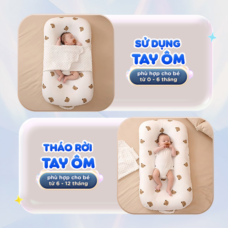 - Tay ôm mô phỏng vòng tay mẹ, tháo rời linh hoạt