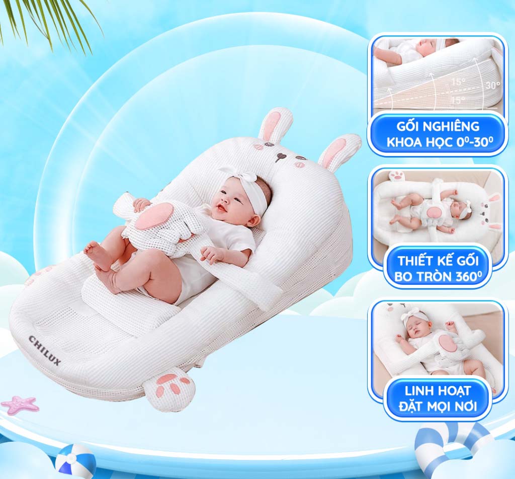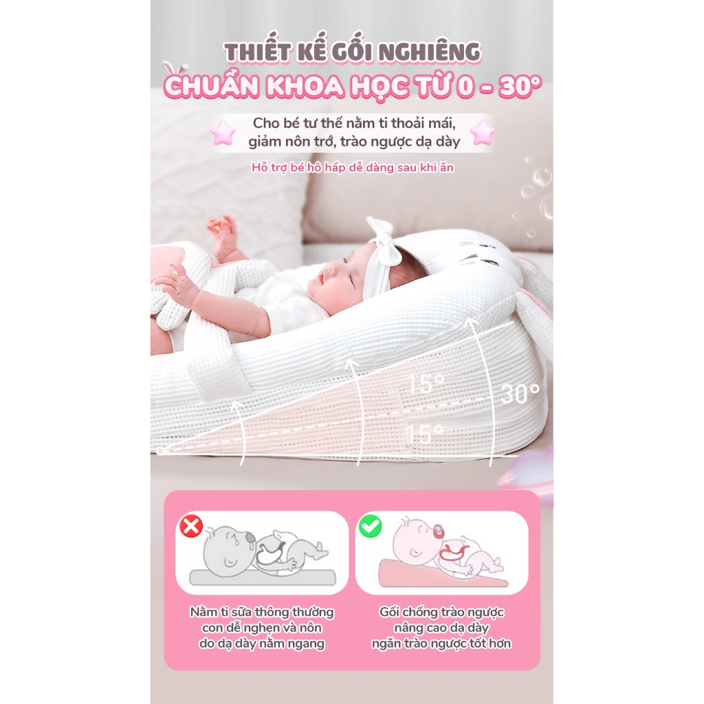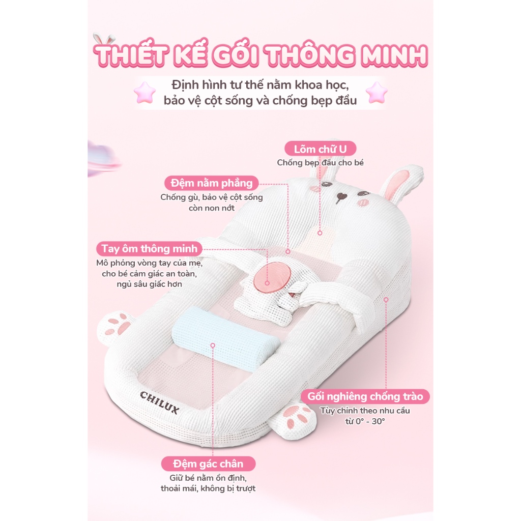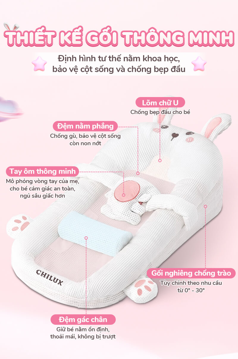 Gối chống trào ngược thỏ hồng Chilux – 3 nấc nghiêng gối nằm, giảm nôn trớ, trào ngược dạ dày