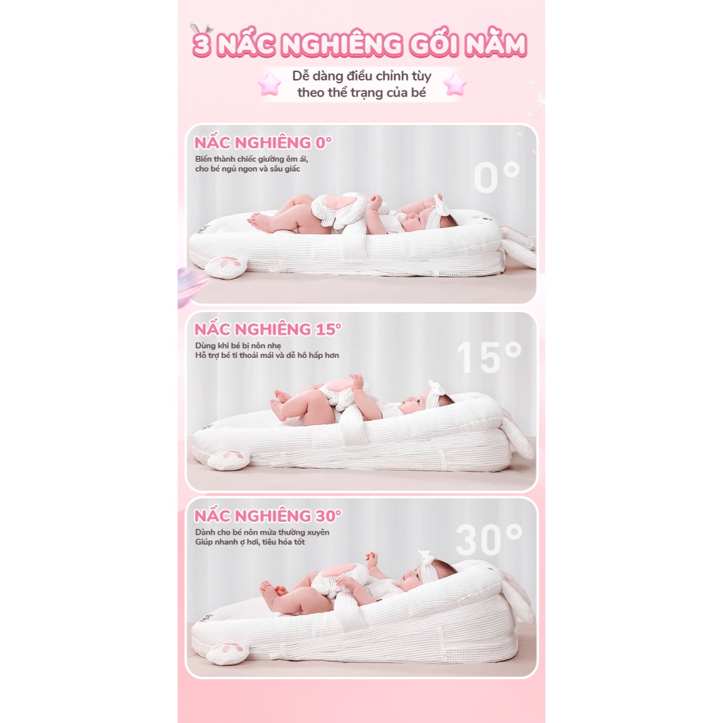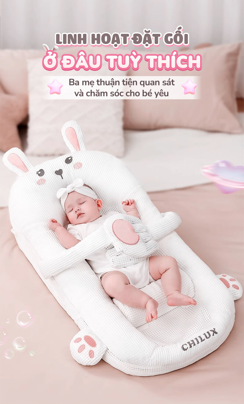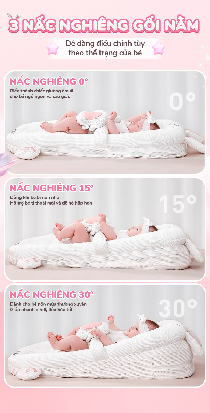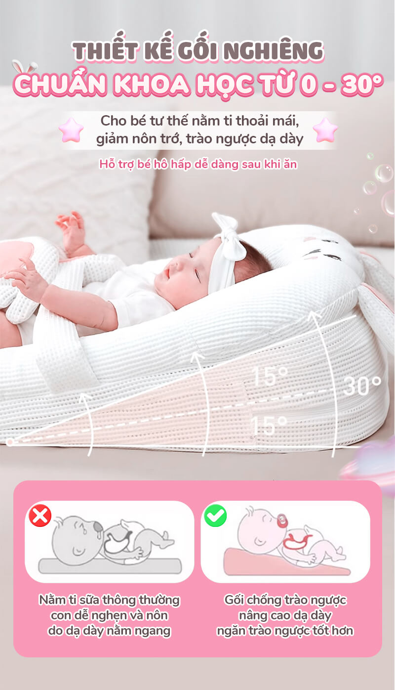 Gối chống trào ngược thỏ hồng Chilux – 3 nấc nghiêng gối nằm, giảm nôn trớ, trào ngược dạ dày