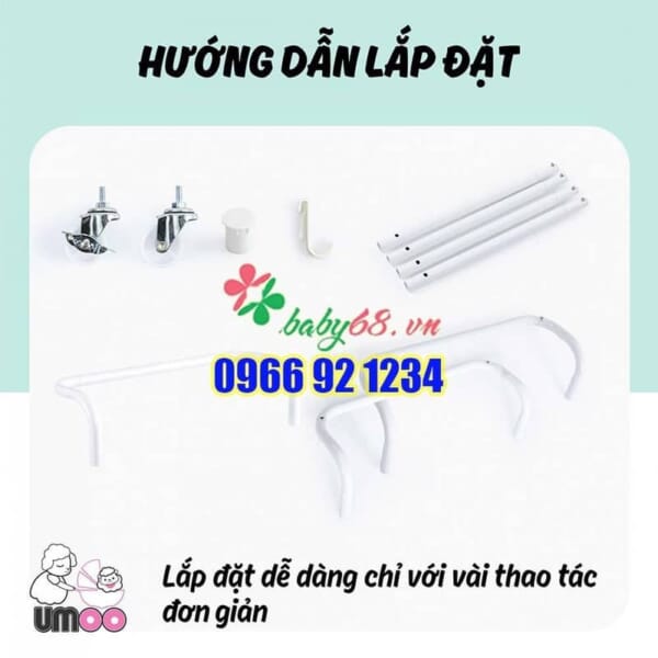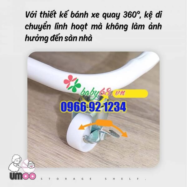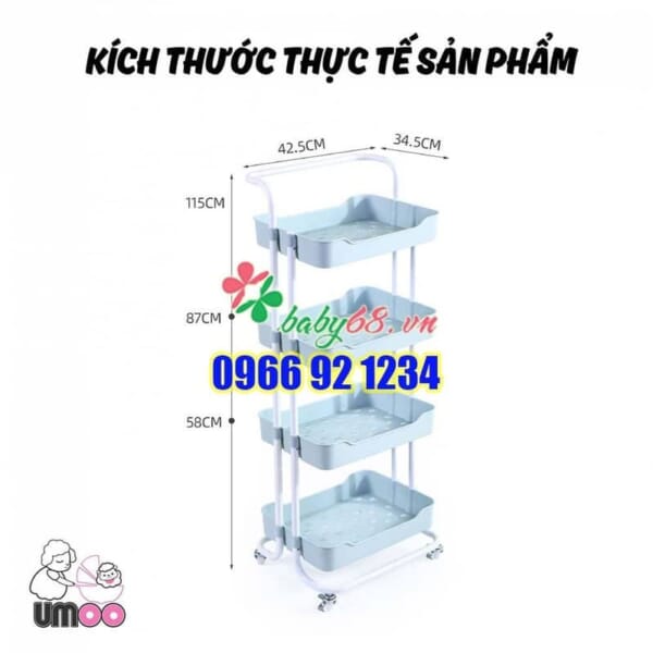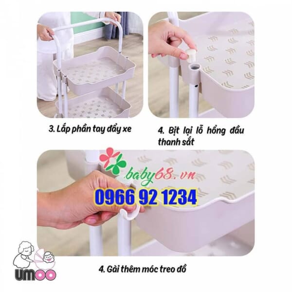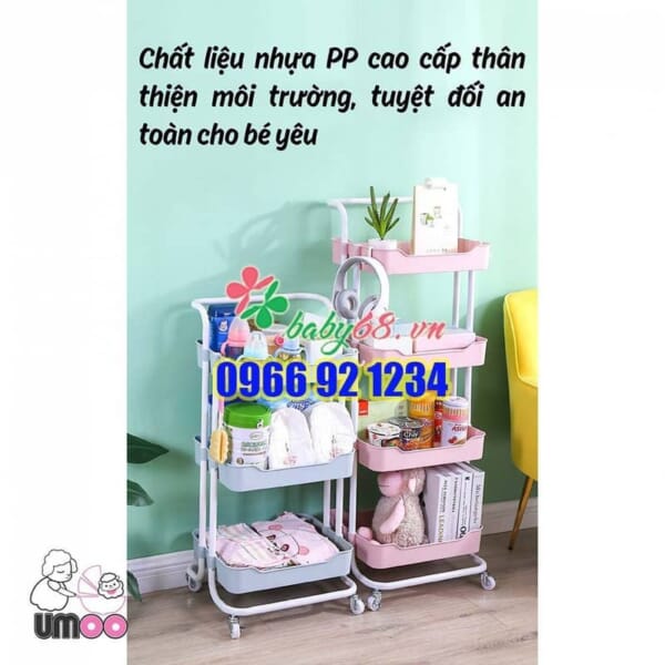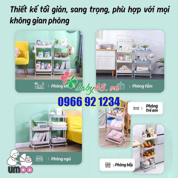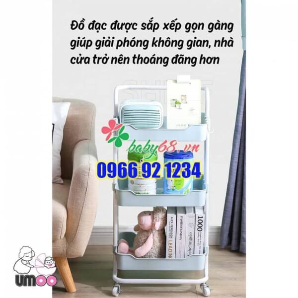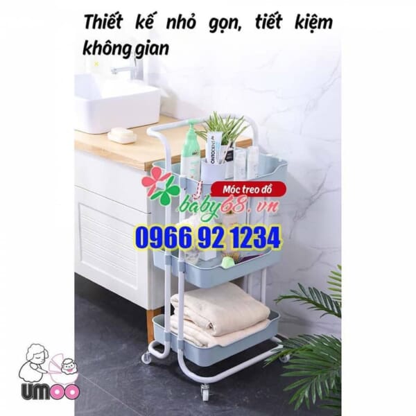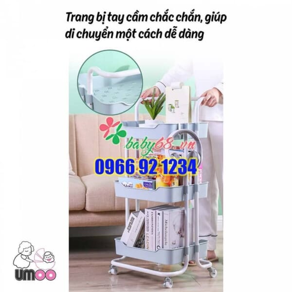 Kệ 3 tầng cao cấp Umoo có tay cầm và bánh xe
