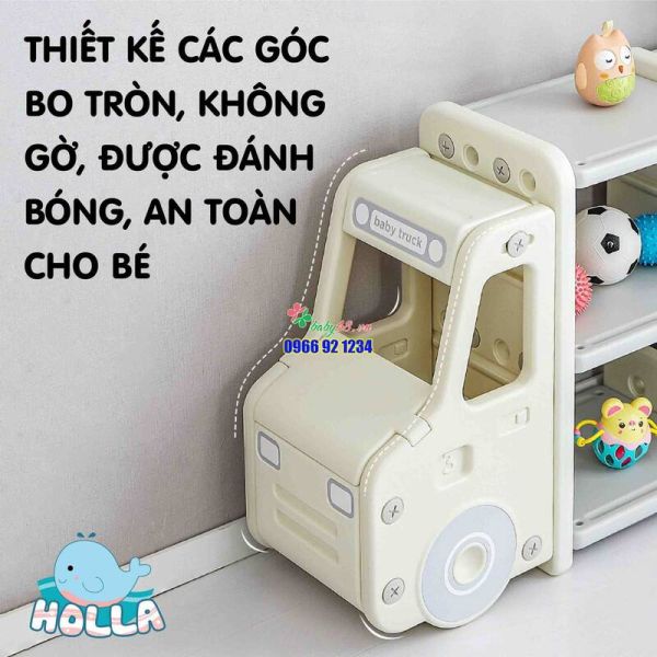 Đặc biệt, phần đầu của kệ đồ chơi ô tô Holla/ Babypods có thiết kế y hệt 1 chiếc ca bin, bé có thể vào trong để đóng vai chú lái xe nữa