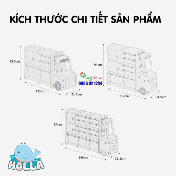 🔺Kệ đồ chơi ô tô Holla: S(31.5*112*65.5cm), M(31.5*112*94cm), L(31.5*149*94cm)