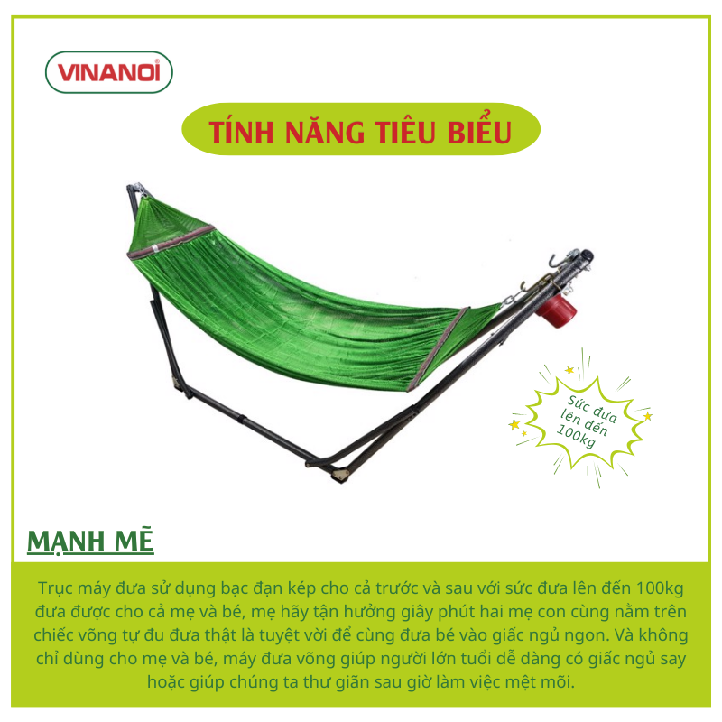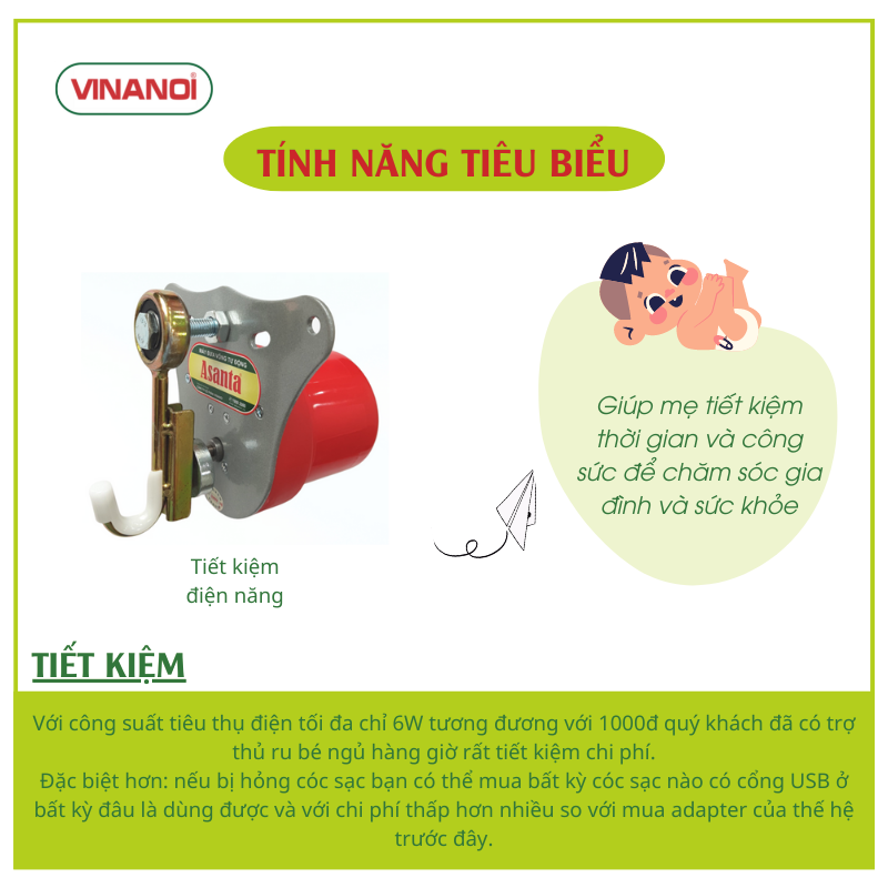 Chăm sóc bé yêu là việc làm tình cảm rất thiêng lêng và sâu lắng trong tâm hồn của mỗi người mẹ. Tuy nhiên, sau khi sinh mẹ rất mệt mõi và cần nhiều thời gian để nghỉ ngơi lấy lại vóc dáng và chăm sóc gia đình. Vì vậy, việc ru con ngủ hàng giờ bên chiếc võng là vấn đề lớn cho mẹ kể cả ông bà phụ chăm sóc bé. Với kỹ thuật hiện đại, Máy đưa võng tự động Vinanoi đã trở nên trợ thủ đắc lực cho mẹ giải pháp chăm sóc bé toàn diện.
