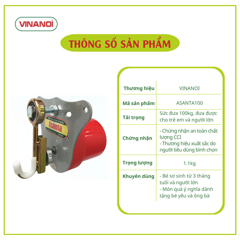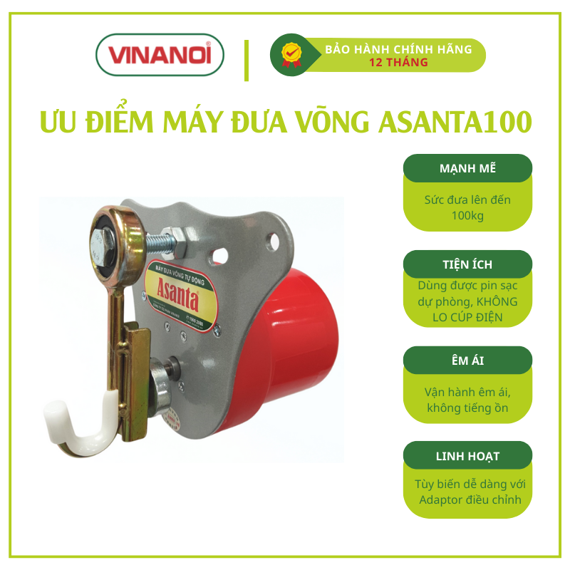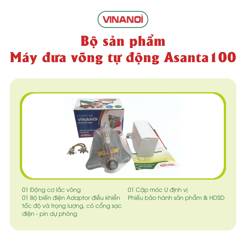 Thương hiệu VINANOI từ lâu đã rất quen thuộc với các gia đình bằng các sản phẩm nôi gỗ đa năng cao cấp, võng xếp tự động…, Trong bài viết này chúng tôi giới thiệu quý khách sản phẩm rất cần thiết trong gia đình đặc biệt cho người lớn và trẻ nhỏ đó là MÁY ĐƯA VÕNG TỰ ĐỘNG CHO BÉ VINANOI – ASANTA100 DÙNG ĐƯỢC PIN SẠC DỰ PHÒNG KHI CÚP ĐIỆN, một sản phẩm chất lượng của Công ty cổ phần Vinanoi.