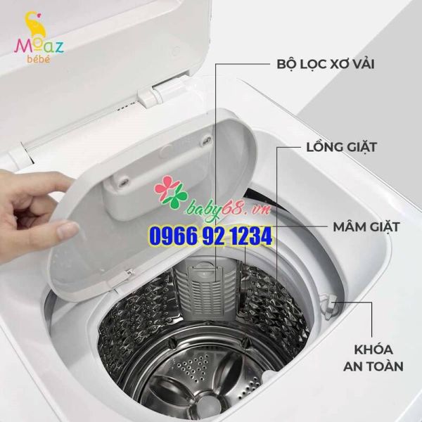 + Lồng giặt được làm bằng inox sáng bóng không gỉ, dung tích lồng chứa được 3 kg quần áo.