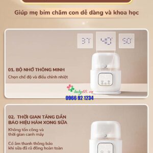 - Hâm ấm sữa nhanh chóng, khoa học với mức nhiệt 37°C – 55°C