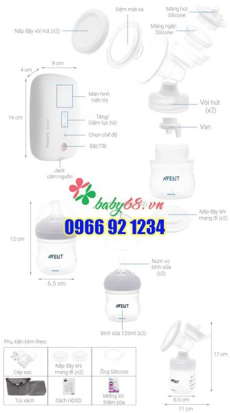 | Tên sản phẩm | Máy hút sữa điện đôi Philips Avent Eureka Plus SCF394/11 |