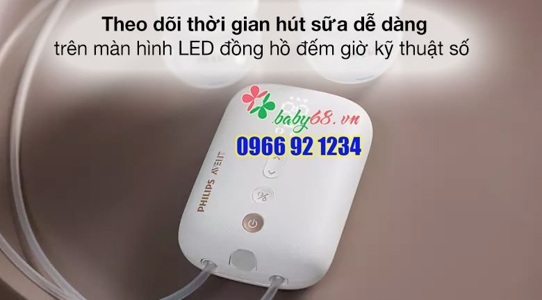 Theo dõi thời gian hút sữa ở mỗi bên ngực và tổng thời gian hút sữa với màn hình đồng hồ đếm giờ kỹ thuật số.