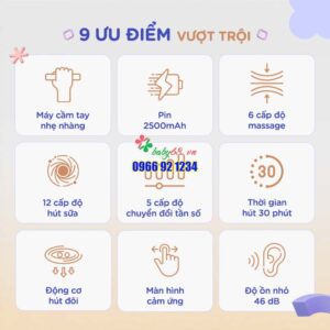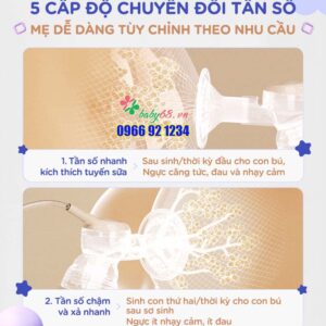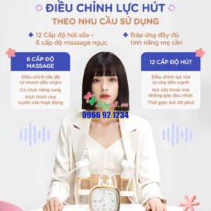 – Điều chỉnh lực hút dễ dàng: 12 cấp độ hút sữa – 6 cấp độ massage ngực – 5 cấp độ chuyển đổi tần số