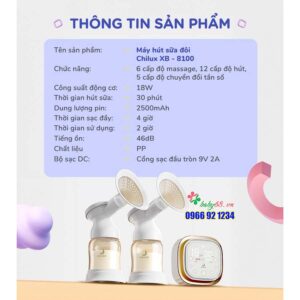 Máy hút sữa đôi CHILUX XB-8100 – 12 cấp độ hút, màn hình cảm ứng, an toàn, tiện lợi