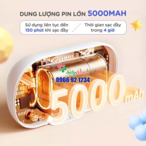 - Dung lượng pin 5000mAH, sử dụng liên tục 150 phút khi sạc đầy