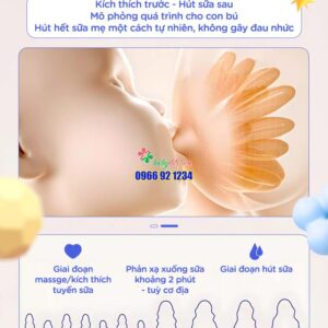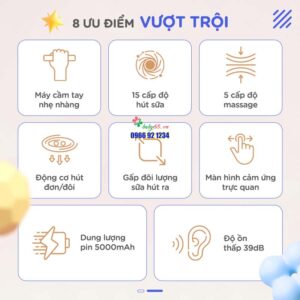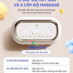 - Điều chỉnh lực hút dễ dàng: 15 cấp độ hút sữa – 5 cấp độ massage