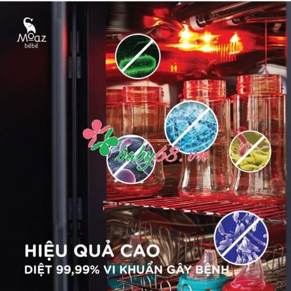 – Sử dụng công nghệ tia UV-C xoay 360 độ hiện đại giúp tiêu diệt vi khuẩn ở bình sữa, đồ dùng của bé và thiết bị gia đình. Ngoài ra, máy có thêm các chức năng sấy hoa quả, làm sữa chua tiện lợi, đa năng chăm sóc cả gia đình.