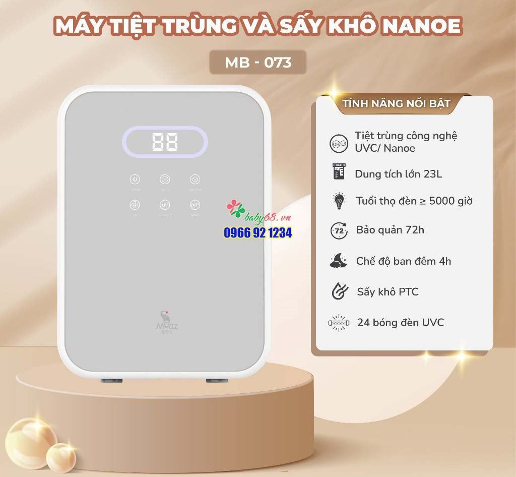 Máy tiệt trùng sấy khô UVC Moaz BéBé MB–073 công nghệ tiệt trùng bằng ion nước Nano, dung tích máy cực lớn tới 23L