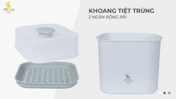 Khoang tiệt trùng – sấy khô đặt vừa 5-6 bình sữa; ngăn trên đặt các dụng cụ khác nhỏ hơn như ti ngậm, thìa, muỗng,…