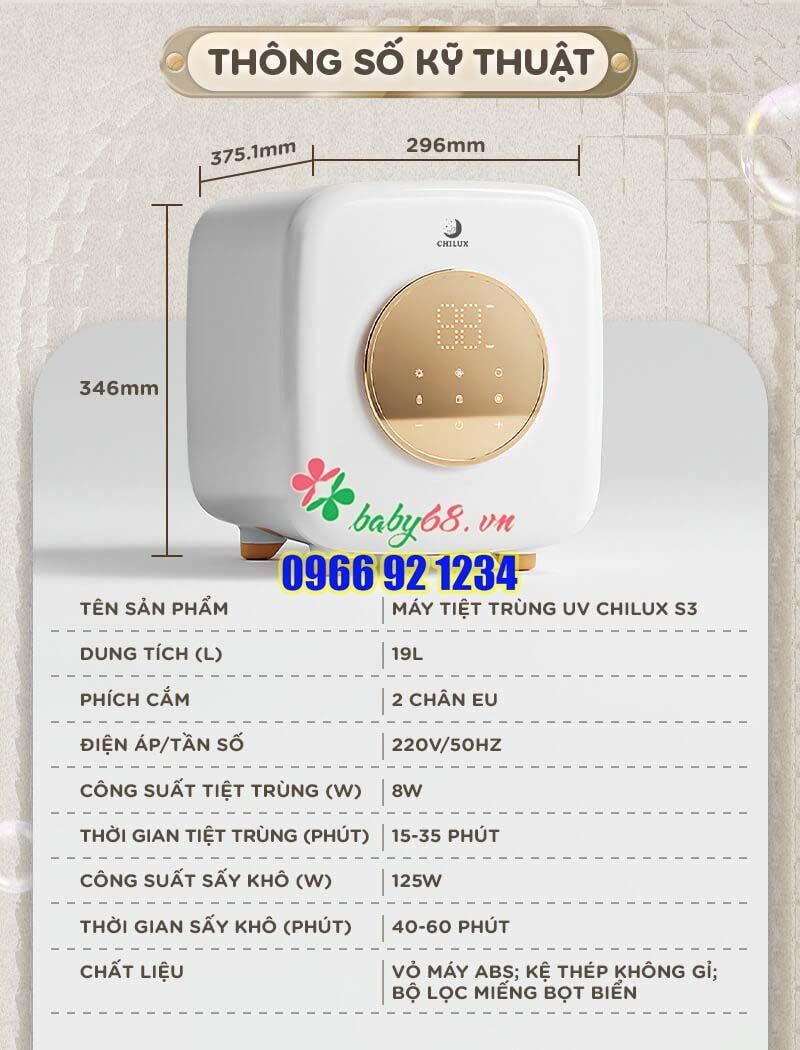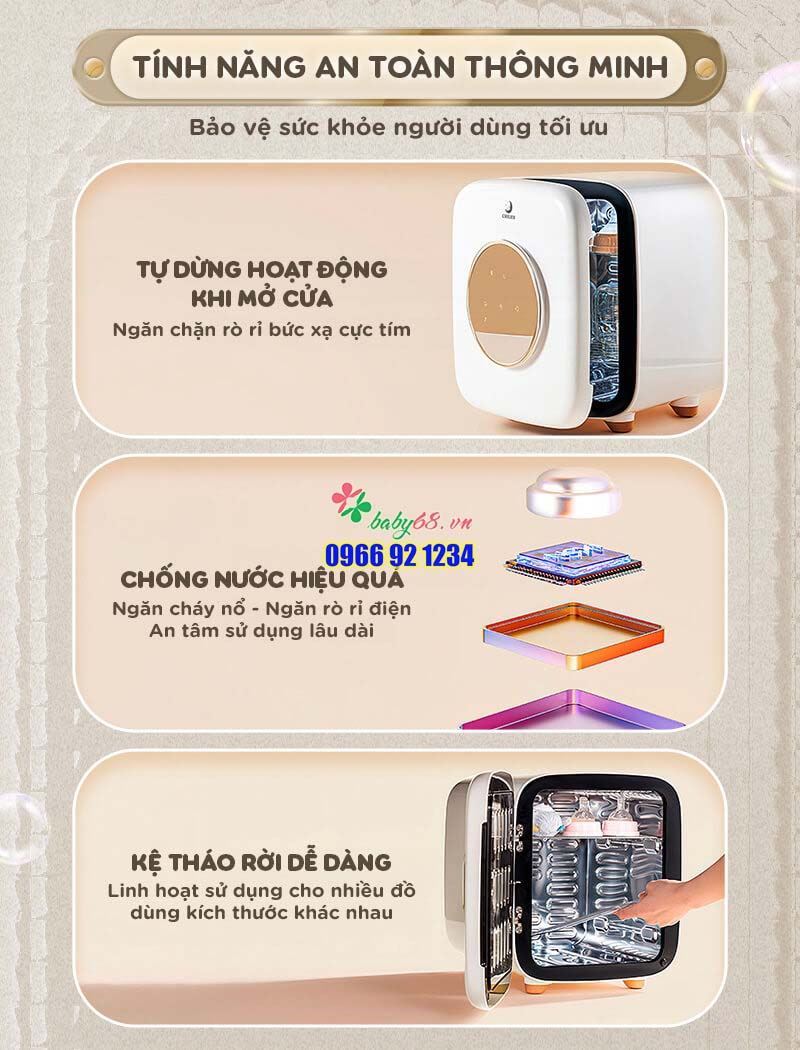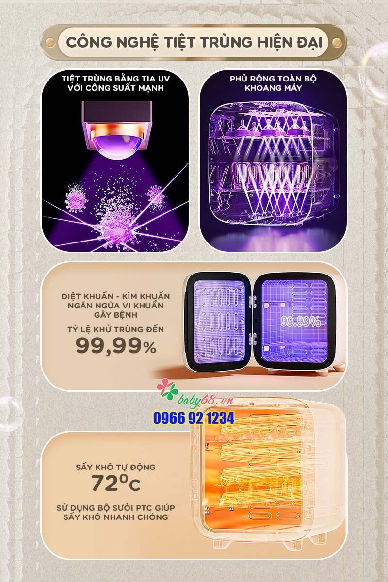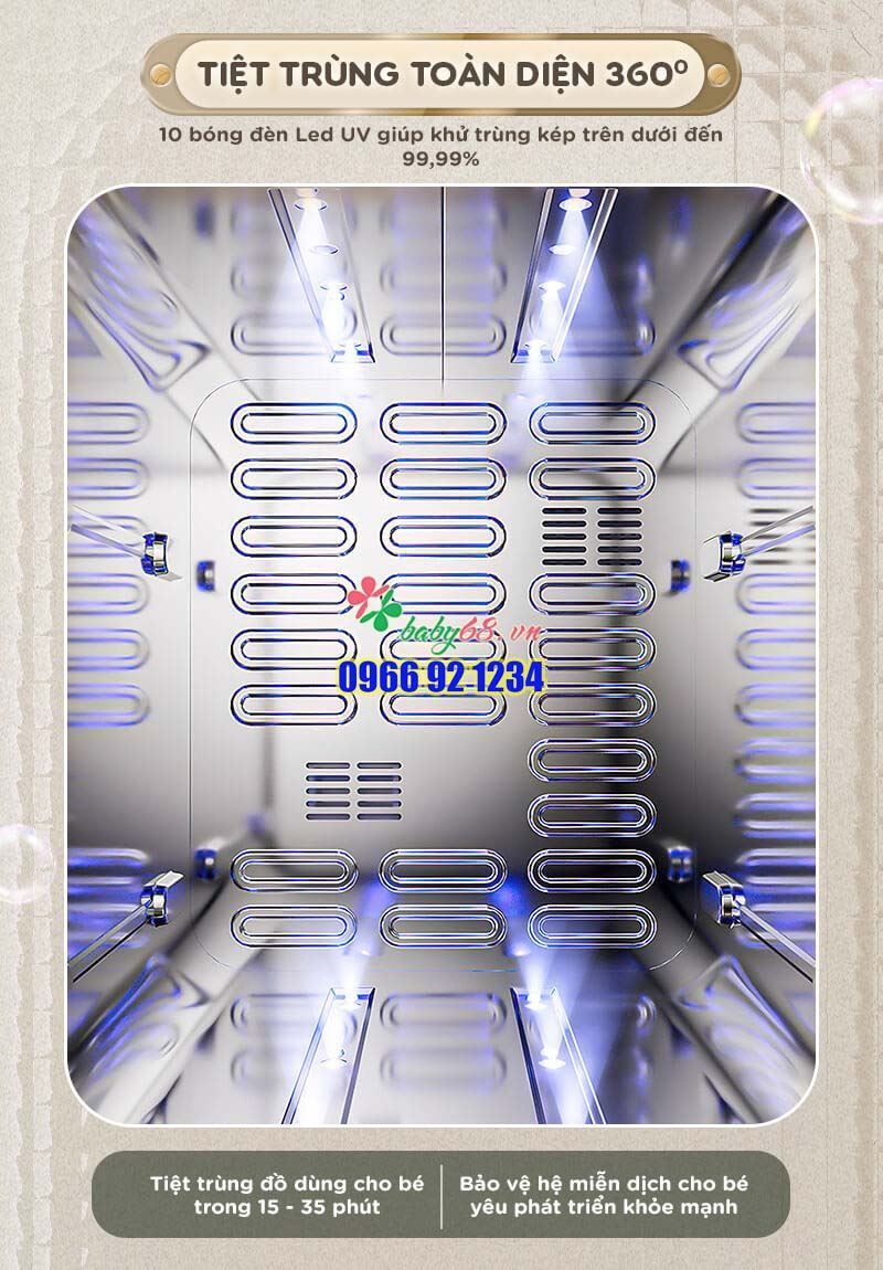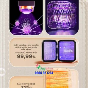 - Cơ chế tiệt trùng toàn diện 360 độ trong 15-35 phút, diệt mọi vi khuẩn gây hại