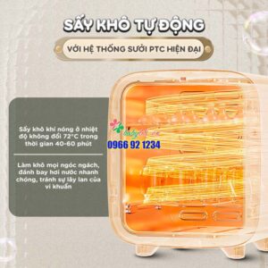 - Sấy khô tự động bằng hệ thống sưởi PTC ở mức nhiệt độ không đổi 72 độ C