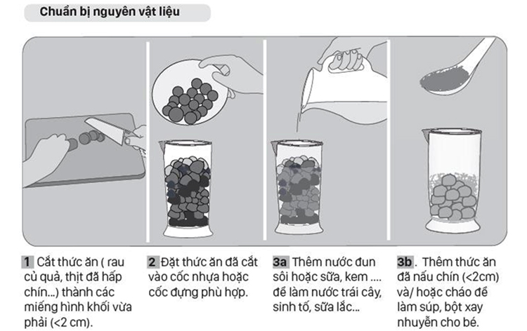 Phù hợp để xay thức ăn trẻ em, cháo, súp, làm mayonnaise, sinh tố, đồ uống, sữa lắc, bột làm bánh…