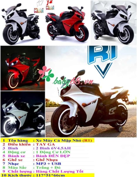 + Mô tô điện R1 cho bé này thiết kế chỗ ngồi rộng rãi, thỏa mái. Đặc biệt có thiết kế tay lái kiểu tay đua siêu ngầu mang lại cho bé cảm giác thích thú khi lái xe, với 2 chế độ điều khiển: chân ga hoặc tay ga, bố mẹ có thể tùy chọn để mua cho bé.