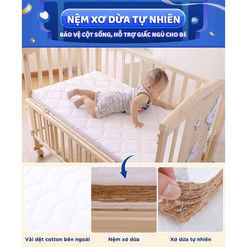 Nệm xơ dừa Chilux cho bé nằm nôi cũi – Nệm 100% xơ dừa tự nhiên – Thoáng mát và chống vẹo xương – Bảo hành 3 tháng
