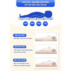 Đệm có độ bền cao, thoáng mát, không làm nóng bé như các loại đệm bông ép thông thường cho bé giấc ngủ ngon và sâu hơn.