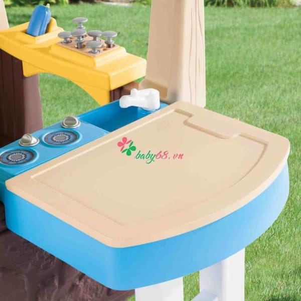 Nhà chơi này có một số tiện ích bổ sung gọn gàng như bàn cát và nước có nắp, bếp và bồn rửa và thậm chí là bàn làm việc với các công cụ! Trẻ mới biết đi và trẻ mẫu giáo sẽ có những giờ chơi tưởng tượng vô tận.