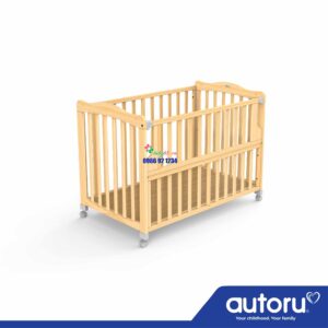 Thiết kế vách bên nôi cũi gỗ cho bé Autoru bằng cánh cửa lật, rất thuận tiện cho mẹ bồng bế, thay tã cho bé khi cần hoặc chuyển đổi thành giường cho bé ghép chung với giường ba mẹ.