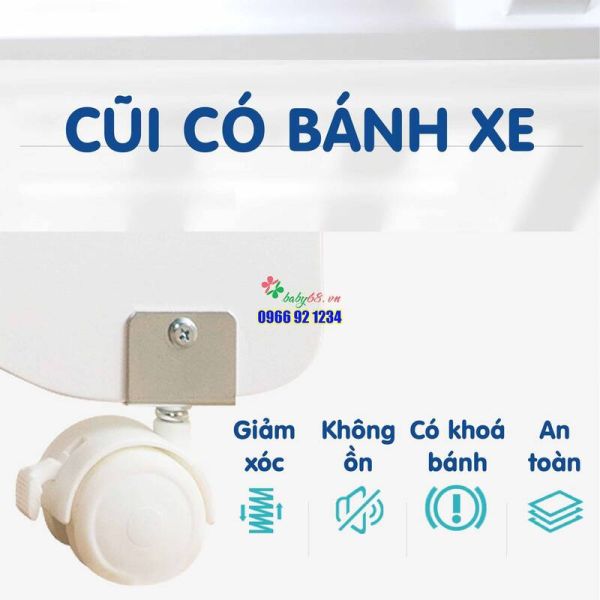 – Bánh xe di chuyển dễ dàng, có hệ thống giảm xóc, không gây ồn, có khóa bánh
