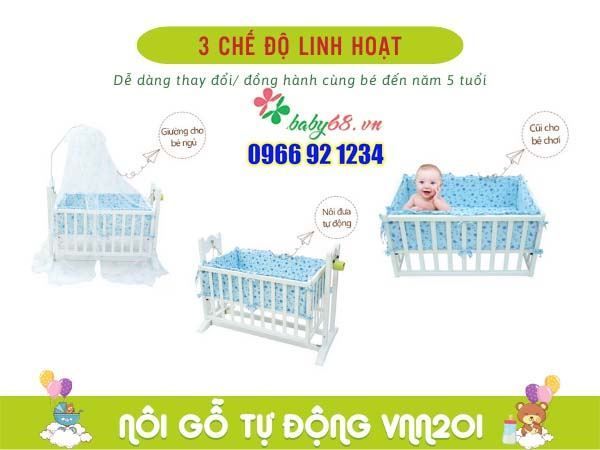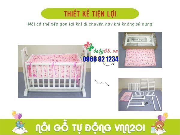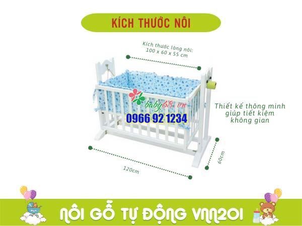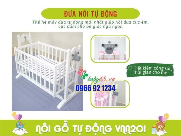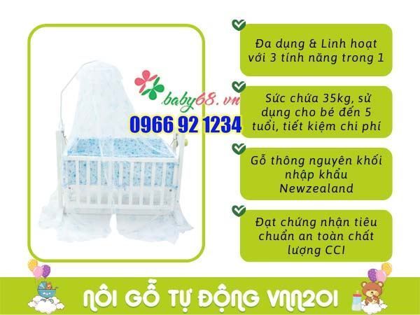 Nôi cũi gỗ cho bé Vinanoi VNN201T màu trắng